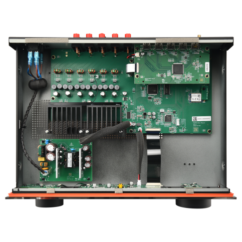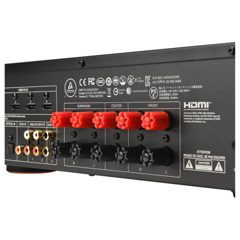 Ресивер оснащений п'ятьма каналами посилення класу D із низьким рівнем шуму, що забезпечує реальну потужність для всіх каналів. Функція EZ Set EQ дозволяє легко налаштувати звукову систему для оптимальної якості звуку з урахуванням акустики кімнати. Інтуїтивно зрозумілий інтерфейс з екранним дисплеєм полегшує налаштування та керування системою через HDMI.