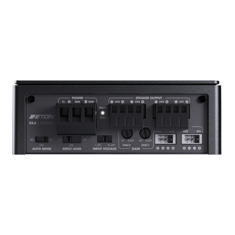ETON PA4 - один з найбільш компактних 4-канальних підсилювачів Class-D для автомобілів, що забезпечує високу продуктивність і широкий набір функцій. розташовані інструменти для налаштування. Підсилювач підтримує активні фільтри, налаштування вхідного сигналу та опору, а також можливість гнучкого монтажу завдяки змінним ніжкам.