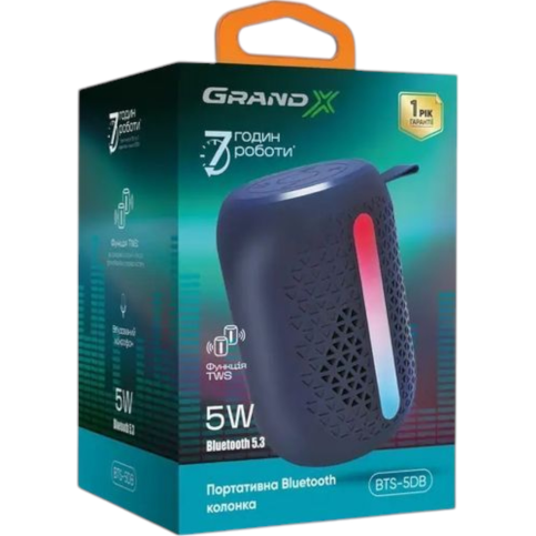 Grand-X BTS-5DB – це не просто колонка, це ваш персональний музичний супутник. Вона стане ідеальним вибором для молодих, активних людей, які хочуть додати трохи драйву у свої будні чи вихідні.