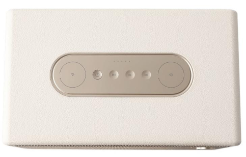 Корпус ES300 виготовлений вручну з дерева та обтягнутий елегантним покриттям, що імітує шкіру. Плетена решітка динаміка та металеві елементи керування надають колонці сучасного вигляду з ноткою ретро-естетики. Вона чудово вписується в будь-який інтер’єр — від класичного кабінету до мінімалістичної вітальні.