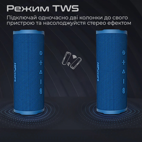 HiFuture Ripple - компактна та легка Bluetooth колонка циліндричної форми. 30W потужного та чистого звуку, 12 годин безперервної роботи та корпус із вологозахистом роблять її ідеальним супутником у будь-яких пригодах. Особливості: Об’ємний звук: Насолоджуйся якісним звучанням улюблених треків завдяки поєднанню сабвуфера на 20W та твітера на 10W. Bluetooth 5.3: Найновіша версія з функцією динамічної оптимізації потужності зменшує енергоспоживання та робить сигнал ще більш стабільним. Li-Pol батарея 4000 mAh: До 12 годин драйву в режимі non-stop. Повністю заряджається за 2.5 години комплектним USB-C кабелем. Два режими EQ: Обирай те, що тобі до душі – збалансоване звучання або потужні баси. Перемикай еквалайзер одним дотиком кнопки. Функція TWS (True Wireless Stereo): Підключай одночасно 2 колонки до одного пристрою та насолоджуйся стерео ефектом. Вологозахист IPX7: Колонка надійно захищена від пилу та дощу, за рахунок чого відмінно підходить для подорожей, відпочинку на природі, на пляжі або біля басейну. Просте керування: 5 кнопок на корпусі контролюють усі необхідні функції. Сучасний дизайн: Корпус з матового ударостійкого ABS-пластику, оббивка з приємної на дотик плетеної тканини. Функціональність: Петля із міцного шнура дозволяє носити колонку на зап’ясті або повісити її у будь-якому зручному місці. Широка сумісність: Девайс повністю сумісний з усіма пристроями з підтримкою Bluetooth будь-яких версій.