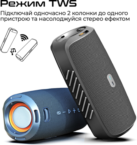 - Функція TWS (True Wireless Stereo): Підключай одночасно 2 колонки до одного пристрою та насолоджуйся стерео ефектом.