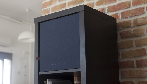 Колонка Morel Högtalare має лаконічний, сучасний дизайн, який буде доречний у будь-якому приміщенні. Її можна поставити на полицю або закріпити на стіні (для кріплення колонки на стіну потрібно придбати спеціальний кронштейн). Колонка Högtalare спеціально розроблена так, що за своїми розмірами ідеально вписуватись у будь-яку полицю або стелаж системи Kallax/Expedit від IKEA. Корпус колонки має чорний колір, але покупець може вибрати одну з чотирьох моделей, що відрізняються кольором грати гриля - Black Out, Blue Blend, Red Statement і White Minimal. Грилі знімний та їх можна купувати окремо, вносячи різноманітність у зовнішній вигляд колонки.