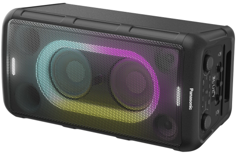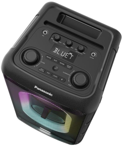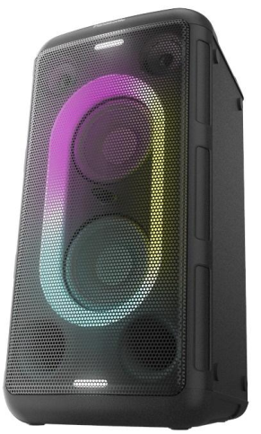 Акустична система для вечірок Panasonic SC-BMAX10 — це портативний пристрій, який поєднує потужний звук і яскраве світлове шоу, ідеально підходячи для вечірок удома, на пляжі чи в парку. Завдяки двом 14-см низькочастотним динамікам, двом високочастотним твітерам і двом басовим портам система видає насичений звук із глибокими басами, чіткими вокалами та яскравими високими частотами, забезпечуючи потужність 150 Вт при підключенні до мережі або 50 Вт від акумулятора. Функція Bass Boost підсилює низькі частоти, що особливо сподобається любителям потужних басів.