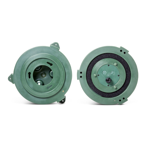 Його компактний розмір дозволяє динаміку зливатися з ландшафтом або чагарником, а міцний корпус з поліетилену кольору мисливця захищає від несприятливого впливу обладнання для догляду за газоном та негоди. Колір корпусу поширюється на весь матеріал, тому динамік збереже колір навіть якщо його подряпати.