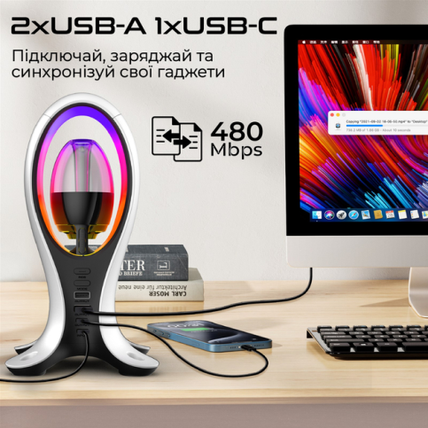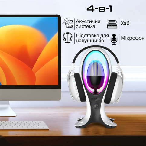 Додай ще більше функціональності та стилю у свій ігровий простір. Promate Alpha-X — колонка, хаб, мікрофон, та підставка для навушників в одному пристрої, стане яскравим акцентом на столі.