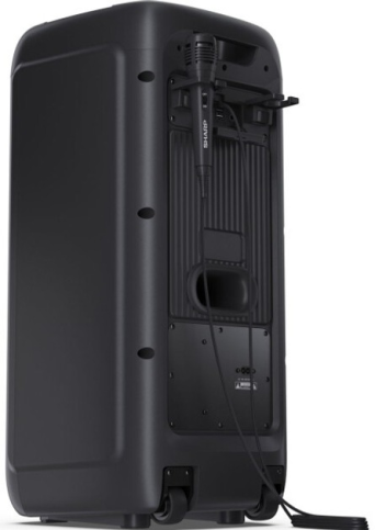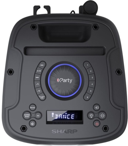 Портативна колонка для вечірок та дискотек Sharp XpartyStreet Beat: Party Speaker PS-949 Портативна колонка для вечірок та дискотек Sharp XpartyStreet Beat: Party Speaker PS-949 з двонаправленим звуком та унікальними світловими ефектами, які синхронізуються з ритмами музики, розкачає ваше свято до краю. Завдяки потужності 132 Вт ви зможете влаштувати клубну вечірку прямо у себе вдома, а захист корпусу за стандартом IPX4 дозволяє веселитися просто неба на пляжі і біля басейну. Ви вибираєте музику – Sharp гарантує ульотний настрій. Унікальна система двоканального стереозвуку створює потужне чисте звучання, яке чути на всю округу. Ваші улюблені хіти заповнюють весь простір, і не має значення, в якій частині кімнати ви знаходитесь. Епіцентр веселощів там, де ви. Музика, яка звучить із потужністю 132 Вт, допоможе вам не лише почути, а й відчути ритм вечірки. 6 встановлених режимів еквалайзера просто підірвуть вечірку. Додайте підсилювач басів Super Bass та оцініть насичені та глибокі нижні частоти, які створюють потрібний настрій та змушують ваше серце битися швидше. Завдяки вбудованим в корпус коліщаткам ви зможете легко переміщати колонку Sharp XpartyStreet Beat: Party Speaker PS-949 по будинку і навіть брати її на вулицю, щоб насолоджуватися музикою у великій компанії просто неба. А завдяки рейтингу захисту IPX4 акустична система захищена від вологи та не боїться бризок. А це означає, що вечірці біля басейну бути. Ємна батарея дасть можливість веселитися до 12 години без перерви – це більше, ніж можна собі уявити. Створюйте потрібний настрій з різнобарвним підсвічуванням, яке пульсує в ритмі музики та додає святу динаміку. Клубне світло з підтримкою різних режимів підсвічування перетворює вашу вечірку на грандіозну яскраву подію. Завдяки технології True Wireless Stereo ви зможете легко підключити дві колонки Sharp та отримати не лише більше гучності, але створити ширшу звукову сцену. Щоб керувати системою, достатньо підключити смартфон до однієї з колонок. Вам забезпечено повну свободу. Технологія Bluetooth v5.0 для бездротової потокової передачі музики, 2 мікрофонних/гітарних входу, відтворення Aux та USB (підтримка форматів MP3, WAV та FLAC) дозволяють підключати до колонки різні пристрої та відтворювати музику з різних джерел. Щоб вам було максимально зручно, у верхній частині колонки є спеціальний тримач для смартфона або планшета: так ви отримаєте легкий доступ до плейлисту.
