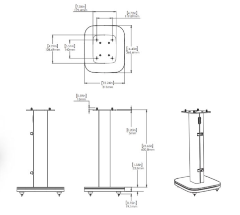 Стенди поставляються попарно із шипами для килимів. Вони мають основу МДФ, пофарбовану в чорний колір, і колону з анодованого чорного алюмінію з такими ж зігнутими сторонами, як у HDI-1600. Для акуратної установки передбачені варіанти прокладання кабелів для внутрішніх та зовнішніх динаміків.