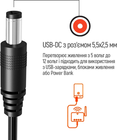 Кабель Colorway для роутера 12V (USB-DC 5.5х2.5mm) 1 м чорний