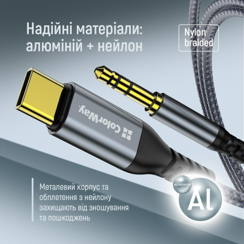 ColorWay USB Type-C - 3.5 мм (M/M), 1.2 м, Gray (CW-CBPDJ071-G)
