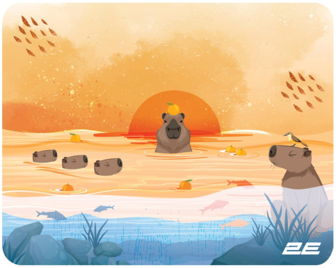 2E Capybarra — килимок, який забезпечить швидкість і точність миші під час роботи. Виготовлений він із приємної на дотик поліестерової тканини та гумової основи, яка забезпечить стійкість на рівній поверхні столу. Плюс до всього, цей матеріал легко очищається, тож ваш килимок завжди виглядатиме як новий.