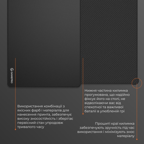 Килимок від компанії GamePro - це ідеальне поєднання якості, зручності та функціональності, яке допоможе вам досягти максимальної продуктивності та комфорту під час роботи за комп’ютером.