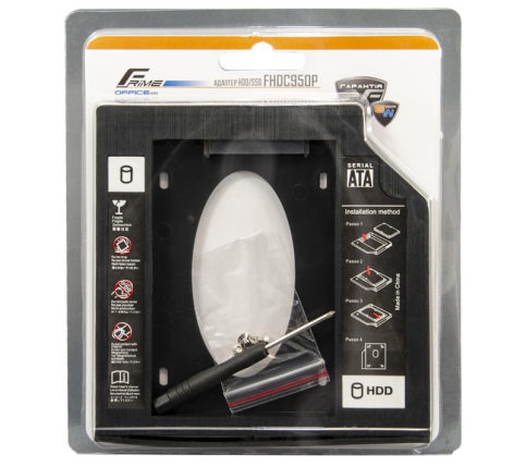 Карман-адаптер Frime призначений для підключення додаткового жорсткого диска HDD / SSD в ноутбук замість приводу CD / DVD / Blu - ray Пристрій Plug and Play, тому не вимагає додаткової установки драйверів і повністю інтегрований з системою. Після установки додаткового SSD / HDD замість приводу ноутбука Вам відкривається ряд переваг, одне з них - це установка додаткової операційної системи на жорсткий диск. Адаптери Frime, в залежності від моделі, виконані як з металу, так і з пластику. Комплектація: адаптер, 4 гвинта для кріплення, викрутка.