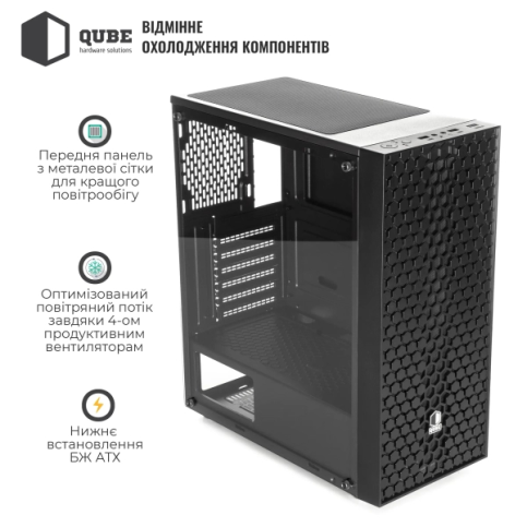 QUBE CARNIVAL Black (CARNIVAL_FCNU3) є відмінним вибором для тих, хто цінує стиль, функціональність та якість. Його універсальність, стильний дизайн та надійність роблять його одним із найкращих варіантів на ринку. Вигідно придбати цей корпус можна в магазині Artline, де на вас чекає широкий вибір і відмінний сервіс.