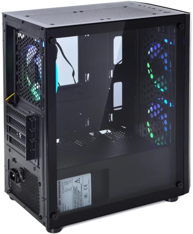 Дизайн виробу виконаний у чорному кольорі, тому такий вигляд підійде до приміщень із будь-яким інтер'єром. Особливо виділяється прозора бокова панель, яка забезпечує неперевершений зовнішній вигляд, а також дозволяє спостерігати за роботою внутрішніх компонентів. Не менш ефектно виглядає передня сітчаста панель з перфорацією.