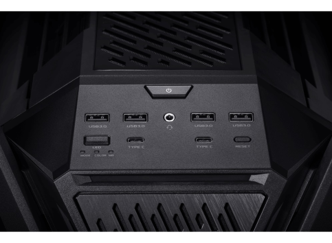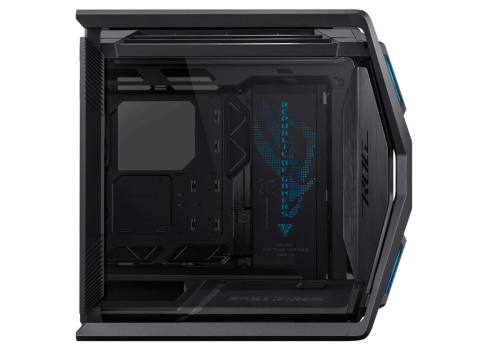 Комп'ютерний корпус ROG Hyperion GR701 E-ATX, підтримка підвійного радіатора 420 мм, чотири 140-мм вентилятори, металевий тримач GPU, сховище для компонентів, концентратор вентиляторів ARGB, швидка зарядка 60 Вт.