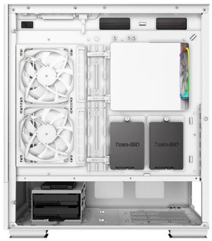 Модель уже оснащена 4 вентиляторами RX120 ARGB PWM з реверсивним розташуванням лопатей та підсвіткою. Це забезпечить ефективне виведення тепла і стабільну роботу компонентів навіть під час великого навантаження. Наявна можливість розміщення зверху системи водяного охолодження з максимальним розміром до 360 мм.
