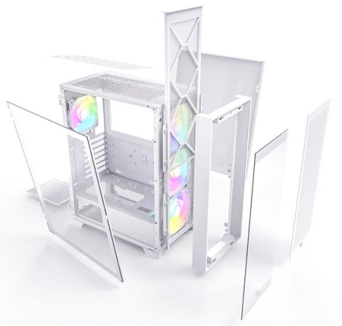 Встановлені вентилятори ARGB можна керувати за допомогою ARGB-сумісного програмного забезпечення материнської плати або світлодіодної кнопки керування на передній панелі (до 9 світлових ефектів). Корпус підтримує встановлення відеокарти до 340 мм, процесорного кулера 170 мм та блока живлення 180 мм.