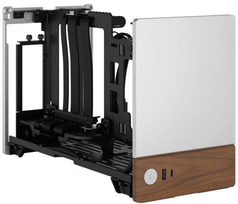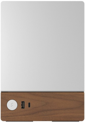 Дизайн пристрою демонструє справжню елегантність, яку підкреслює матова поверхня сріблястого кольору з дерев'яними елементами. Продумана компактна та водночас простора конструкція дозволяє зібрати доволі потужну конфігурацію системи для вирішення всіх необхідних завдань, завантаження ігор та медіа.
