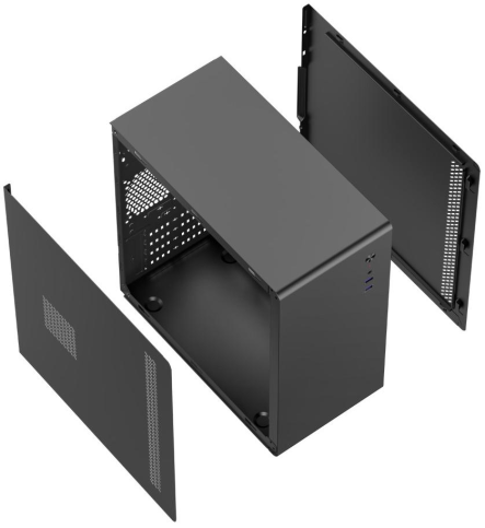 Корпус виготовлений у типорозмірі Mini Tower та передбачає можливість встановлення материнських плат із формфактором Micro ATX і Mini ITX. Він має достатній простір для збирання на його основі високопродуктивної системи. Корпус має всі необхідні роз'єми та інтерфейси, такі як USB, аудіороз'єм для навушників та мікрофона. Також має встановлений блок живлення на 500 Вт.