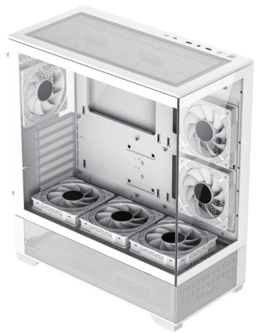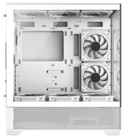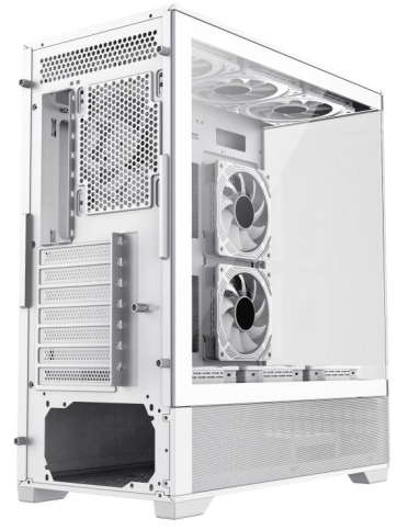 Модульний вхід/вихід дозволяє переміщати материнську плату вище/нижче для систем з повітряним або водяним охолодженням. Щоб забезпечити достатній потік повітря, попередньо встановлено 6x120 мм ARGB вентиляторів. Корпус сумісний із найбільшими картами серії NVIDIA 4000 довжиною до 410 мм.