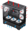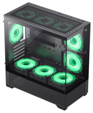 Gamemax Vista зосереджений на охолодженні. Модульний вхід/вихід материнської плати дозволяє переміщати материнську плату вище/нижче для систем з повітряним/водяним охолодженням. Щоб забезпечити достатній потік повітря, вентилятор із загальним розміром 9x120 мм, дрібна сітчаста панель угорі та з боку кожуха блоку живлення сприяють чудовій вентиляції.