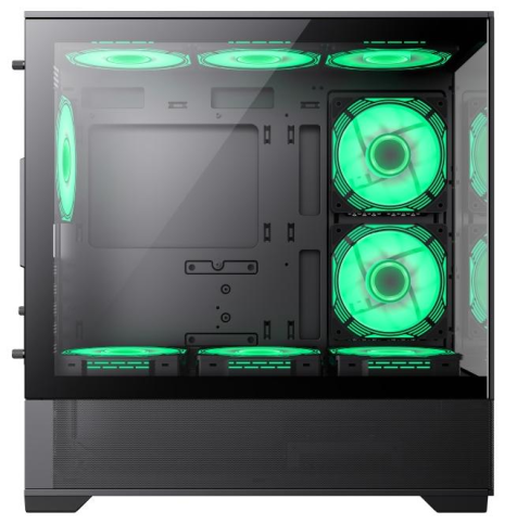 Корпус виготовлений у типорозмірі Midi-Tower та дозволяє встановлювати материнські плати із формфактором Mini ITX та Micro ATX.