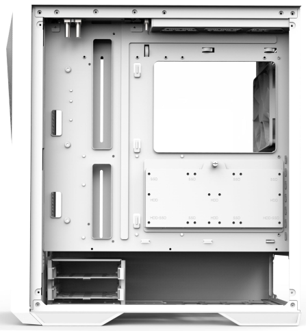 Зручно розташовані порти на верхній панелі забезпечують швидкий доступ для підключення периферійних пристроїв, гаджетів тощо. Виріб підтримує встановлення процесорного кулера висотою до 185 мм, а відеокарти довжиною до 390 мм.