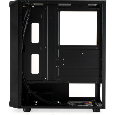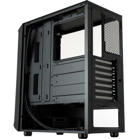 Геймерський корпус типорозміру Midi Tower має вертикальну установку, блок живлення не передбачений в комплекті. Корпус має 4 внутрішніх відсіків для розширення розмірами від 2.5 дюймів до 3.5 дюймів. Також є 7 слотів розширення. Охолодження здійснюється за допомогою 6 вентиляторів (опціонально), кожен - діаметром 12 см. Для зручності на корпусі розташовано чотири зовнішніх роз'єма, два USB 2.0, один USB 3.0, вхід для навушників і мікрофону.