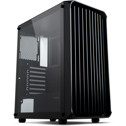 Корпус Vinga Creep дозволить сконструювати гарний геймерський комп'ютер: система вентиляції з вентиляційними гратами забезпечує нормальний температурний режим навіть при повному завантаженні. У корпусу є бічна панель з загартованого скла - вона прозора, тому користувач може побачити, як працює «начинка» корпусу. Місце для блоку живлення знаходиться на дні корпусу, це допомагає погасити вібрацію і зробити рівень шуму нижче навіть при повному навантаженні. На корпусі розташовані кнопки управління живленням і завантаженням системи, а також входи для навушників, USB-порти і входи для мікрофона. Максимально допустимий розмір карт для установки - до 345 мм, максимально прийнятна висота кулера - 160 мм.