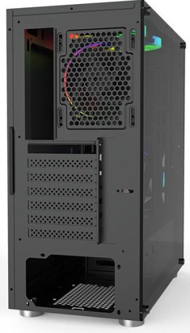 Цей корпус оснащений 4-ма 120 мм попередньо встановленими вентиляторами Rainbow LED розміром, які не лише забезпечують ефективне охолодження системи, але й створюють красивий світловий ефект. Крім того, система вентиляції з мереживною передньою панеллю та верхньою й нижньою вентиляцією забезпечує відмінний потік повітря всередині корпусу.
