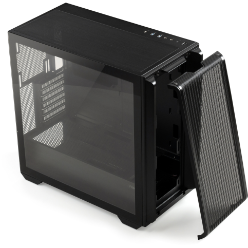 Геймерський корпус типорозміру Midi Tower має вертикальну установку, блок живлення не передбачений в комплекті. Корпус має 3 внутрішніх відсіків для розширення розмірами від 2.5 дюймів до 3.5 дюймів. Також є 7 слотів розширення. Охолодження здійснюється за допомогою 7 вентиляторів (опціонально), кожен - діаметром 12 см. Для зручності на корпусі розташовано три зовнішніх роз'єма, два USB 3.0, вхід для навушників і мікрофону.