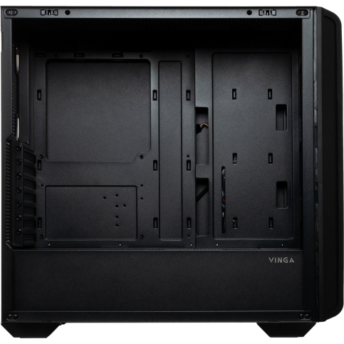 Корпус Vinga Cage дозволить сконструювати гарний геймерський комп'ютер: система вентиляції з вентиляційними гратами забезпечує нормальний температурний режим навіть при повному завантаженні. У корпусу є бічна панель з загартованого скла - вона прозора, тому користувач може побачити, як працює «начинка» корпусу. Місце для блоку живлення знаходиться на дні корпусу, це допомагає погасити вібрацію і зробити рівень шуму нижче навіть при повному навантаженні. На корпусі розташовані кнопки управління живленням і завантаженням системи, а також входи для навушників, USB-порти і входи для мікрофона. Максимально допустимий розмір карт для установки - до 380 мм, максимально прийнятна висота кулера ЦП - 185 мм. Розмір БЖ - 260 мм. Загальні габарити корпусу - 230 x 476 x 470 мм.