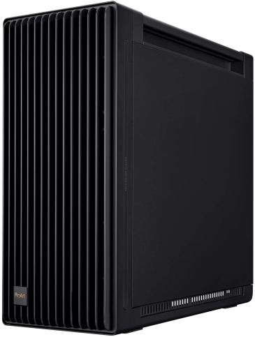 ASUS ProArt PA602 — класичний корпус формфактора Midi-Tower, який вирізняється покращеним повітряним потоком, ергономічною конструкцією з двома вбудованими колесами для легкого маневрування та елегантним дизайном у мінімалістичному стилі.