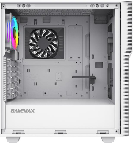Корпус Gamemax Zorro COC, подвійна адресована стрічка RGB з різними режимами освітлення, Т-подібний канал повітряного потоку з запатентованим шасі COC (охолодження та розгін), який активує турбовентилятор на пластині материнської плати для швидкого розсіювання тепла материнської плати.