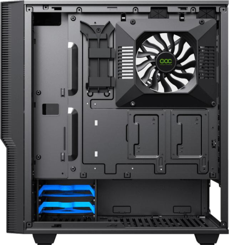 Корпус Gamemax Zorro COC, подвійна адресована стрічка RGB з різними режимами освітлення, Т-подібний канал повітряного потоку з запатентованим шасі COC (охолодження та розгін), який активує турбовентилятор на пластині материнської плати для швидкого розсіювання тепла материнської плати.