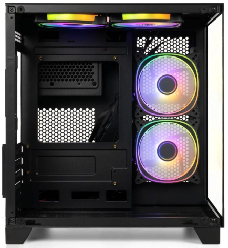QUBE Reef ARGB оснащено чотирма вентиляторами діаметром 120 мм, два з яких розташовані збоку, а два зверху. Це забезпечує ефективне відведення тепла від компонентів та гарантує підтримання оптимальної робочої температури навіть під час інтенсивних ігрових сесій та значних навантажень.