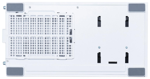 Кожух блоку живлення містить відсік для жорсткого диска з 2 лотками для SSD або HDD. Його можна зняти, щоб забезпечити додатковий простір для прокладання кабелю. Застібки-липучки на задній частині корпусу фіксують кабелі, підключені до задніх портів вводу/виводу материнської плати, зменшуючи безлад і покращуючи потік повітря.