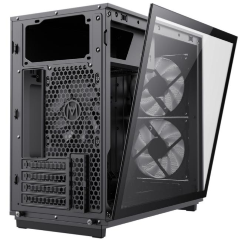 Завдяки просторій конструкції, управління кабелями стає легким. Насолоджуйтесь покращеним повітряним потоком і вільним простором без захаращення. Дизайн вирізняється сітчастою передньою панеллю через яку можна легко розглянути вентилятори із підсвіткою. Бокова панель прозора, тому внутрішні компоненти системи будуть відкриті для огляду. На передній панелі внизу компактно розміщені порти для периферійних пристроїв, що є дуже зручним під час повсякденного використання.