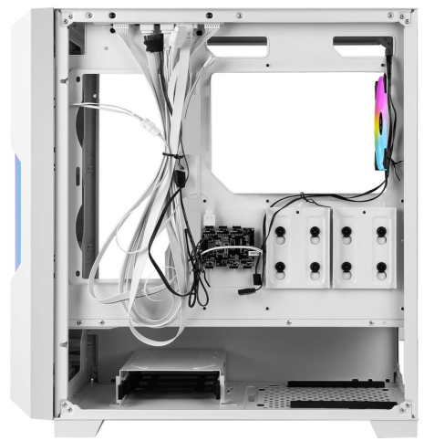 Guardian Glass підтримує до 9 вентиляторів 120 мм, забезпечуючи чудовий потік повітря. Можна встановити 3 вентилятори спереду, 3 зверху, 2 збоку та 1 ззаду, що дає можливість створити ефективну систему охолодження для найвибагливіших компонентів. Корпус вміщає радіатори до 280/360 мм спереду та радіатори до 280/360 мм у верхній частині.