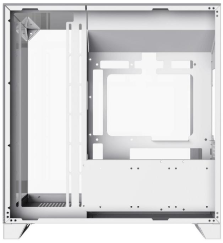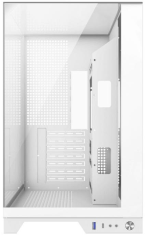 Корпус виготовлений із високоякісної сталі SPCC, а його передня та бічні панелі виконані з загартованого скла, що додає естетики та дозволяє демонструвати компоненти з підсвіткою всередині.