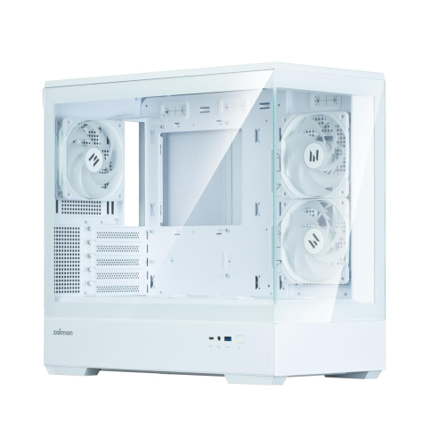 Панорамний корпус Zalman P30 WHITE V2 для сучасної домашньої чи ігрової станції, сумісний із актуальними компонентами. Передня та бічна панелі із загартованого скла. Забезпечено активне обдування компонентів за рахунок перфорації металевої поверхні панелей корпусу. Продумано захист від пилу. У комплекті 3х120мм ARGB вбудованих вентиляторів. Вентилятори на бічній панелі – реверсні: забезпечують постачання повітря ззовні. Вентилятор на задній панелі працює на видуві. Корпус укомплектований усіма необхідними деталями для складання та подальшої експлуатації, є стандартні сучасні актуальні інтерфейси та роз’єми.