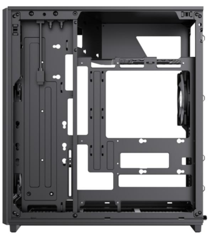 Завдяки просторій конструкції, управління кабелями стає легким. Насолоджуйтесь покращеним повітряним потоком і вільним простором без захаращення. Дизайн вирізняється сітчастою передньою панеллю через яку можна легко розглянути вентилятори із підсвіткою. Бокова панель прозора, тому внутрішні компоненти системи будуть відкриті для огляду. На передній панелі внизу компактно розміщені порти для периферійних пристроїв, що є дуже зручним під час повсякденного використання.