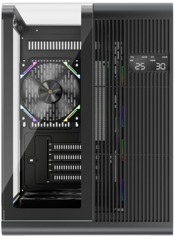 На корпусі розміщений LED-дисплей, який відображає інформацію про процесор, використання пам’яті, температуру та частоту. Це забезпечує зручний моніторинг стану системи.