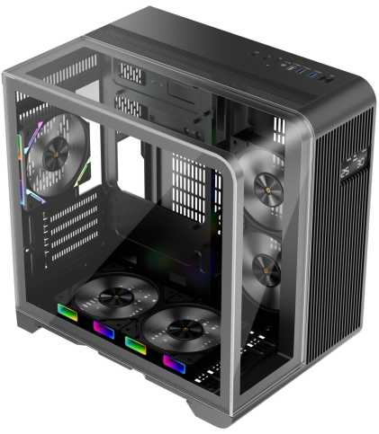 Спереду та зверху корпус має U-подібне загартоване скло, а також скляні панелі з трьох сторін, що відкривають багатокутний огляд внутрішніх компонентів. Такий дизайн підкреслює естетику системи та дозволяє повною мірою насолоджуватися підсвіткою ваших компонентів.