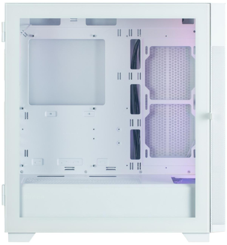Корпус вирізняється загартованим склом на бічній панелі, що забезпечує панорамний огляд компонентів і створює сучасну естетику. Сітчасті верхня та передня панелі сприяють оптимальному повітряному потоку, забезпечуючи ефективне охолодження навіть для потужних конфігурацій. Синхронізована RGB-підсвітка із попередньо встановленими вентиляторами додає візуальної привабливості, дозволяючи налаштувати кольори через сумісні материнські плати.