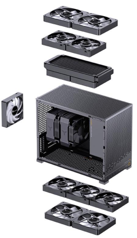 Корпус підтримує материнські плати Mini-ITX та Micro-ATX, що дозволяє створювати потужні компактні системи, не займаючи зайвого місця на столі. Попри невеликі габарити, Jonsbo D32 Pro забезпечує ефективну циркуляцію повітря, підтримуючи декілька вентиляторів або 240-мм радіатор СРО, що гарантує відмінне охолодження навіть при високих навантаженнях.