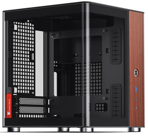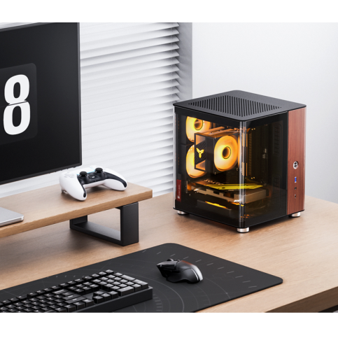 Корпус Jonsbo TK-0 — це компактний, але вишуканий корпус формату ITX, що поєднує інноваційний дизайн та преміальні матеріали. В його конструкції використано 2.5 мм алюмінієвий сплав, 1 мм сталь і стильне дерев'яне оздоблення товщиною 16 мм, що додає йому елегантного та природного вигляду. Прозора панель дозволяє продемонструвати внутрішні компоненти, створюючи ефектний візуальний акцент.