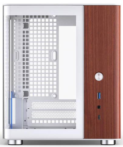 Корпус Jonsbo TK-0 — це компактний, але вишуканий корпус формату ITX, що поєднує інноваційний дизайн та преміальні матеріали. В його конструкції використано 2.5 мм алюмінієвий сплав, 1 мм сталь і стильне дерев'яне оздоблення товщиною 16 мм, що додає йому елегантного та природного вигляду. Прозора панель дозволяє продемонструвати внутрішні компоненти, створюючи ефектний візуальний акцент.