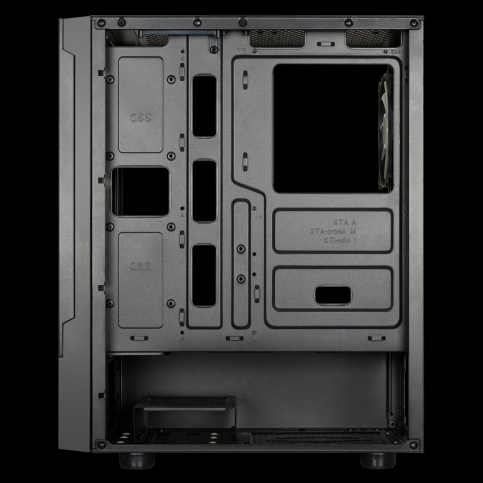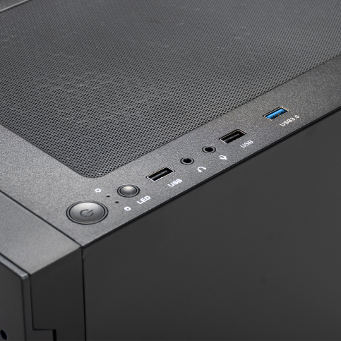 Інтерфейси швидкого доступу розміщуються на верхній панелі, що полегшує доступ користувача при підключенні периферійних пристроїв та аксесуарів. Яскравий акцент та геймерського шику вносить вставка з підсвіткою на передній панелі. Конструкція корпусу не тільки привабливо виглядає, а і є достатньо ергономічною, що спрощує збірку та експлуатацію ПК.